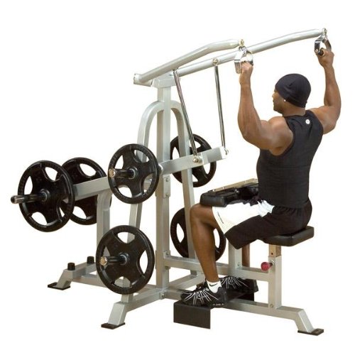 New Body-Solid Pro Clubline LVLA Leverage Lat Pulldown. This commercially rated product features heavy duty 2" x 3" 11 gauge steel construction with an electrostatically applied powder coat paint finish and durable double stitched upholstery. The 360 degree articulating hand grips are perfect for the serious lifter looking for variety. Included for your convenience, 4 all new triple chromed weight storage holders. This product has been approved for commercial application in the following industries: Corporate facilities, YMCA/JCC, Military/Government, Police and Fire Departments, Parks and Recreation, High Schools, Universities/Colleges, Personal Training Studios, Fitness Centers, Hotels and Spas, Multi-Housing, Rehab and Medical, Community Service Agencies, and Professional Sports Teams. Please note that Olympic Weight Plates are not included and sold separately.